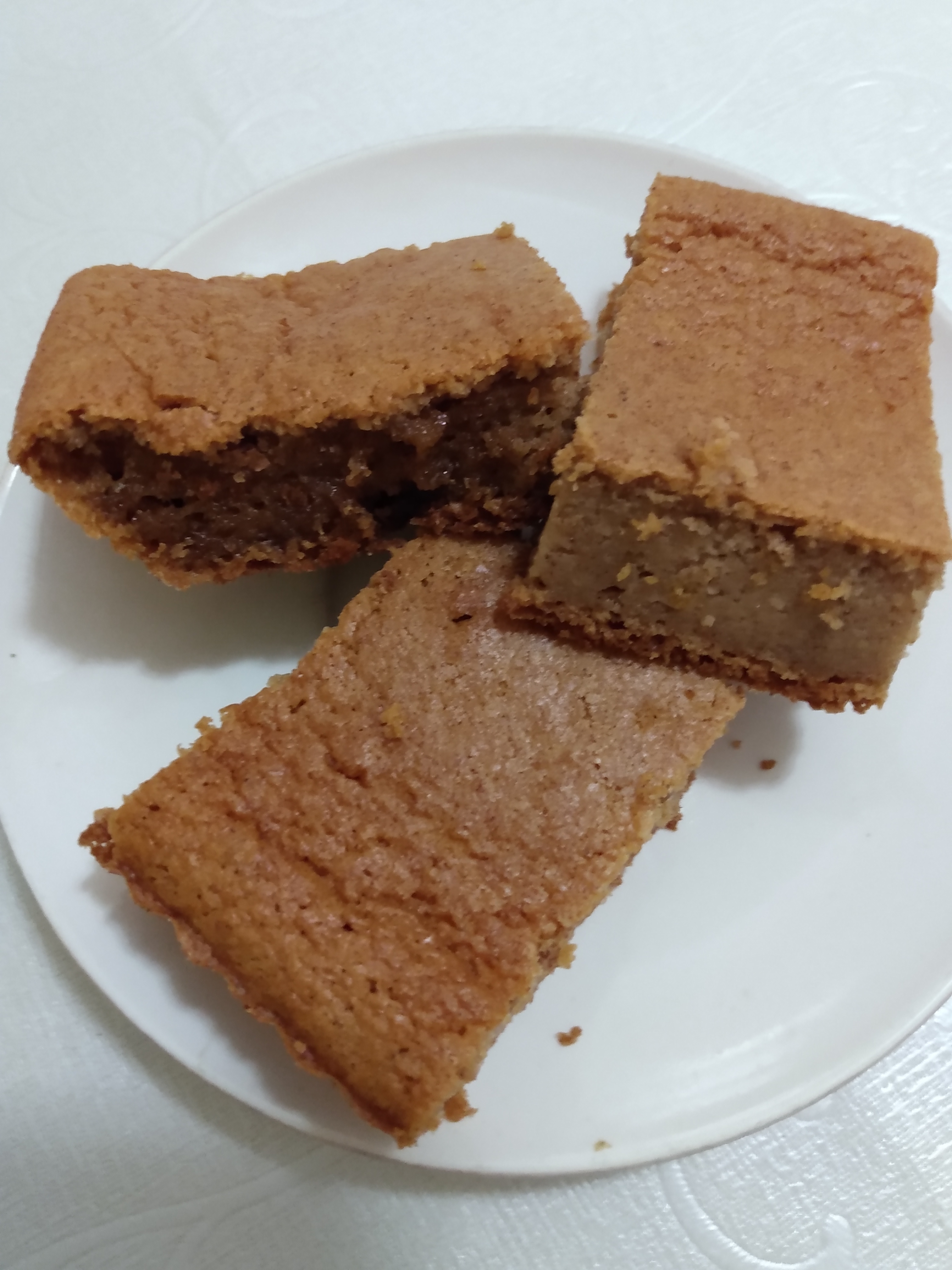 Numa tigela, misture a farinha, o fermento, o açúcar e a canela. Acrescente a mistura liquidificada e misture. Asse em forno bem baixinho até que um palito saia sequinho.
